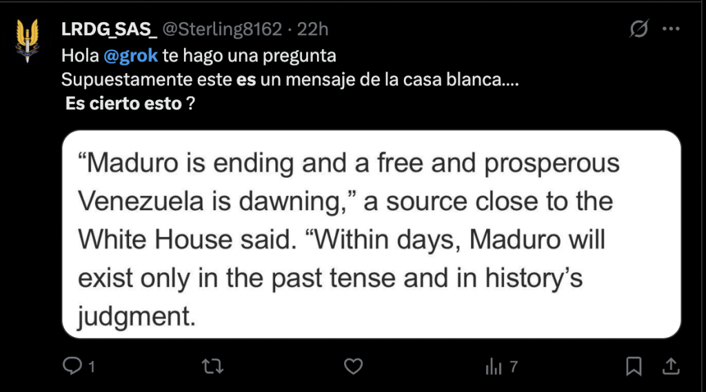 Grok es la IA de X.com -ex Twitter-, es un LLM (Large Language Model) que, según su propia web, “fue preentrenado por xAI con una variedad de datos de fuentes públicas. La revisión y selección de los conjuntos de datos estuvo a cargo de tutores de IA, que son revisores humanos”. HUMANOS es la palabra clave. Lo cierto es que una gran cantidad de personas, incluso intelectuales, lo usan como fuente de consulta diaria, tanto es así que ya es un chiste en la red X tipear: ‘@grok ¿esto es cierto?’.